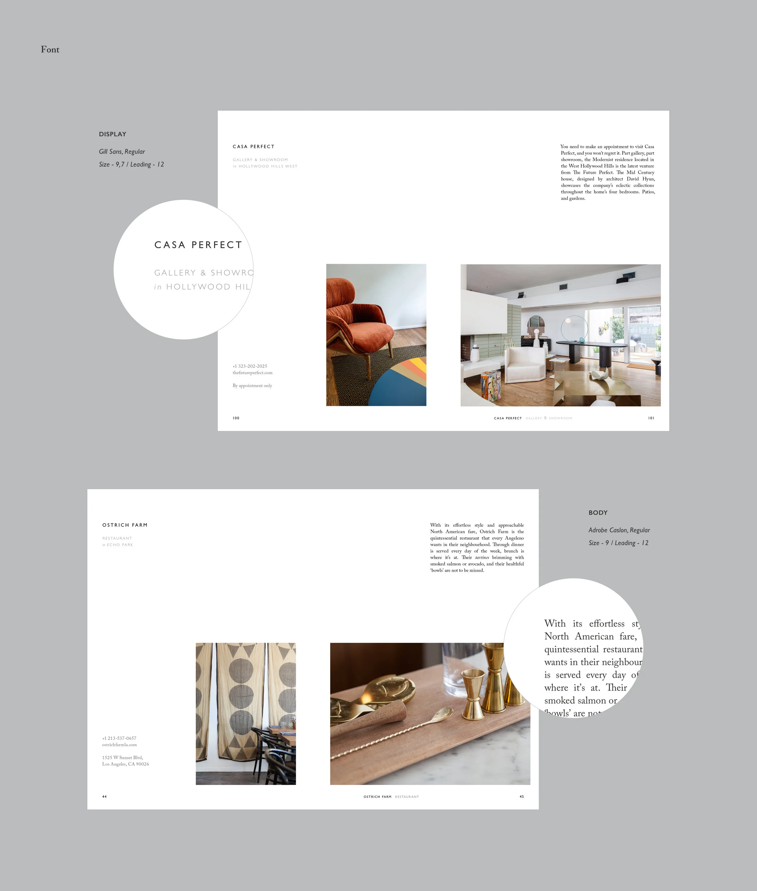 The Cereal City Guide is a city guidebook from Cereal, a travel & style magazine based in the UK. Unlike other commercial travel guide, Cereal City Guide reflects Cereal’s values in both quality and aesthetic sensibility. In addition to being a practical travel booklet where the Cereal team personally visits the city and introduces carefully selected venues, its minimal design with beautiful original photos have built a loyal readership. The goal for this project was to redesign the Cereal City Guide for the LA edition.